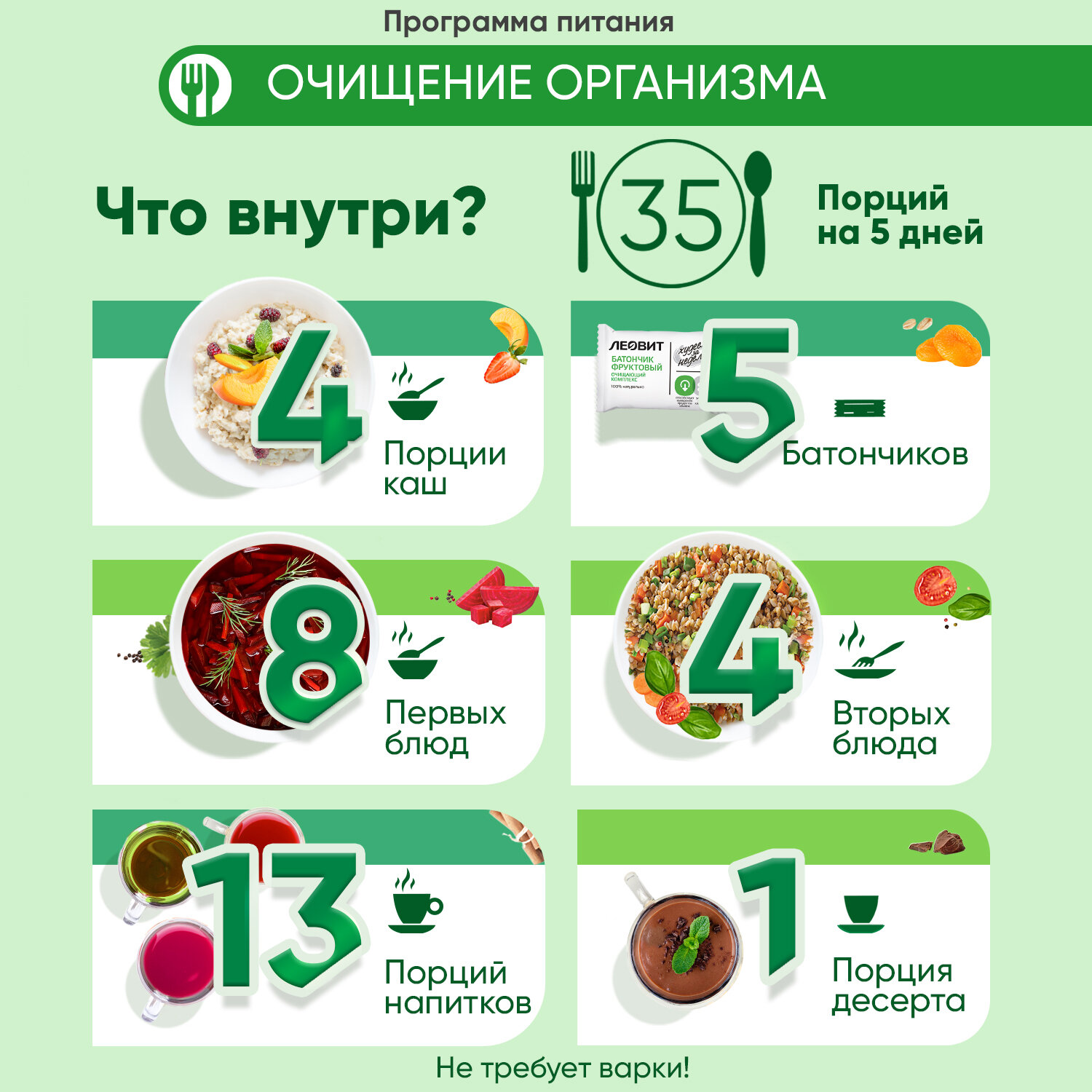 Программа питания Очищение Организма Худеем за неделю, 35 порций