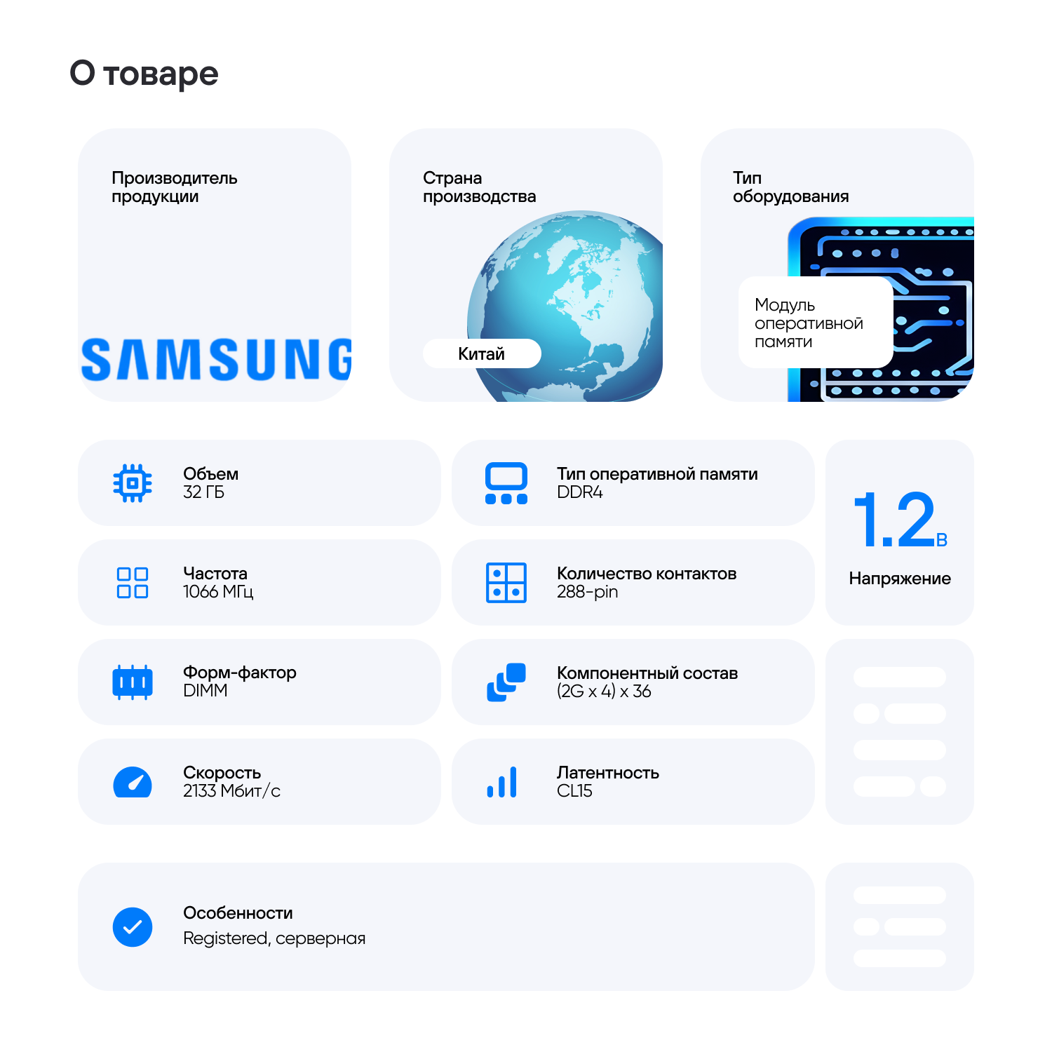 Модуль оперативной памяти Samsung M393A4K40BB0-CPB0Q 32 ГБ DDR4 2133 МГц DIMM CL15 совместим для замены M393A4K40BB0-CPB