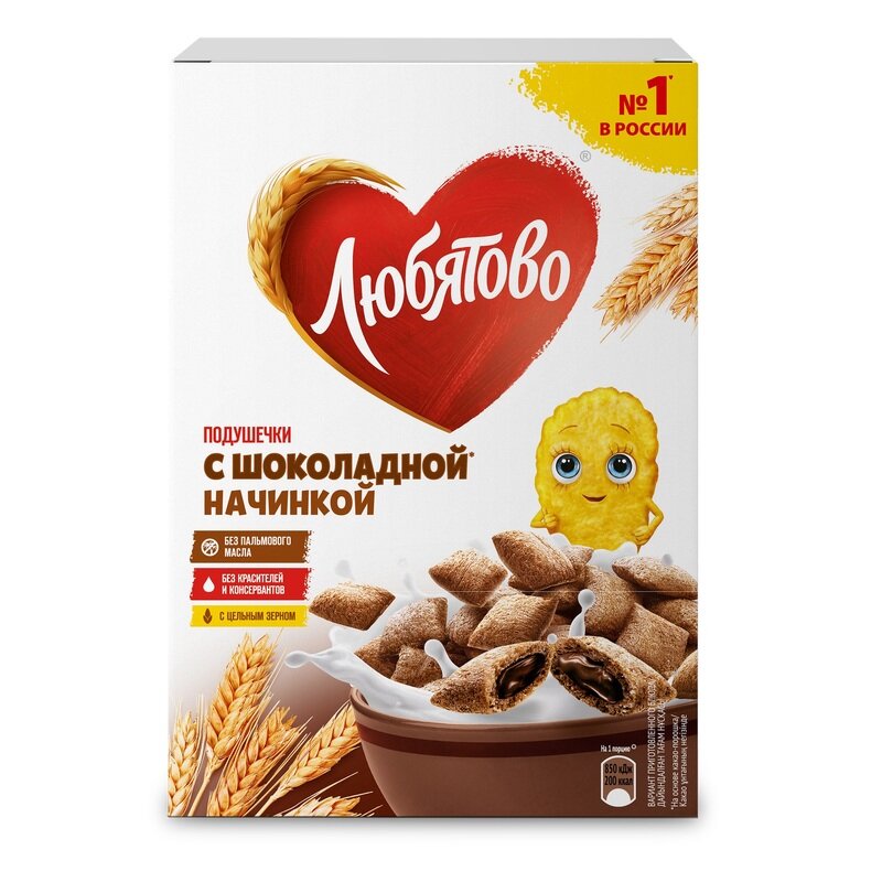 Готовый завтрак Любятово Подушечки с шоколадной начинкой, 220г