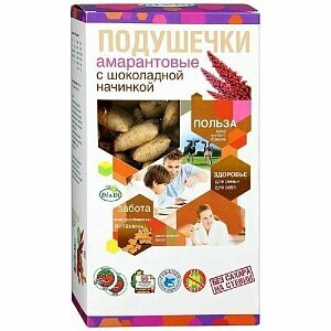 Подушечки амарантовые "Di&Di" с шоколадной начинкой со стевией, 250 гр ( без сахара и без глютена) интересное: