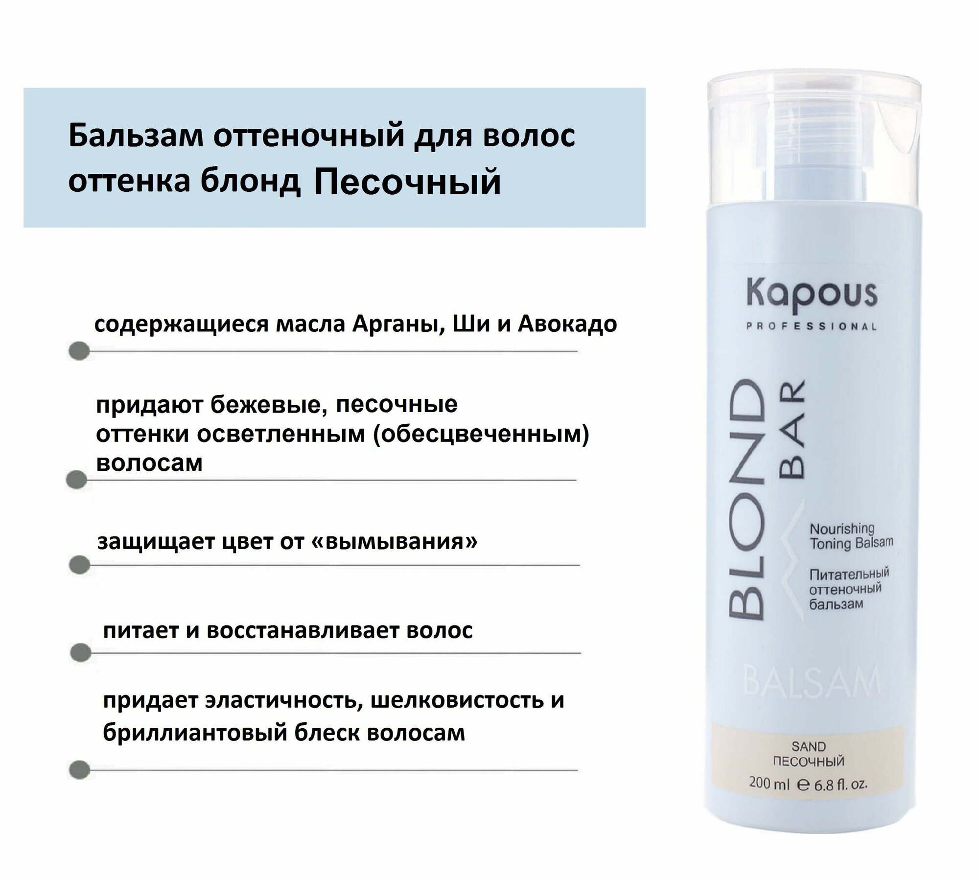 Бальзам оттеночный питательный Kapous «Blond Bar» для оттенков блонд, Песочный, 200 мл