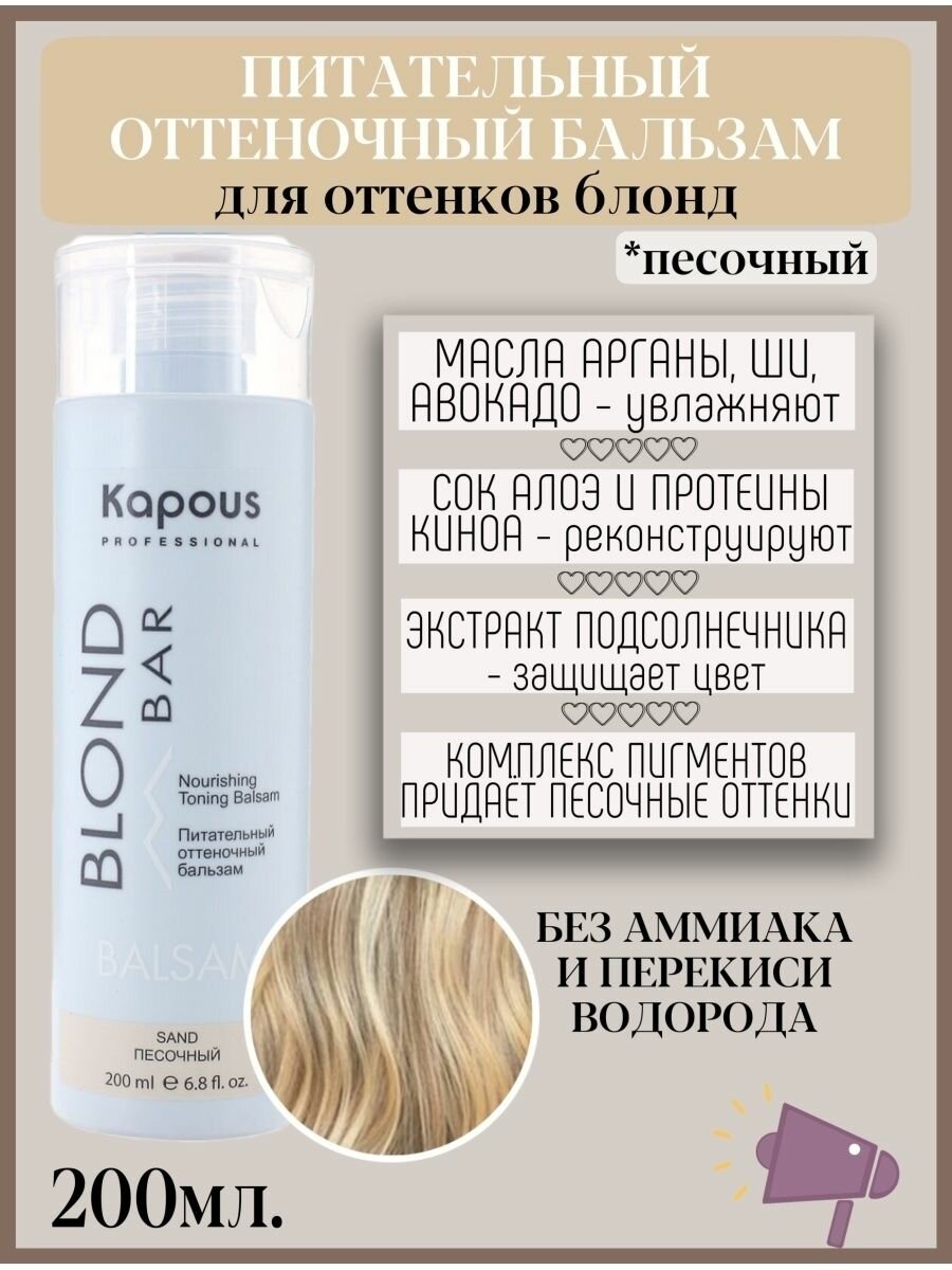 KAPOUS BLOND BAR питательный оттеночный бальзам "песочный" 200 МЛ
