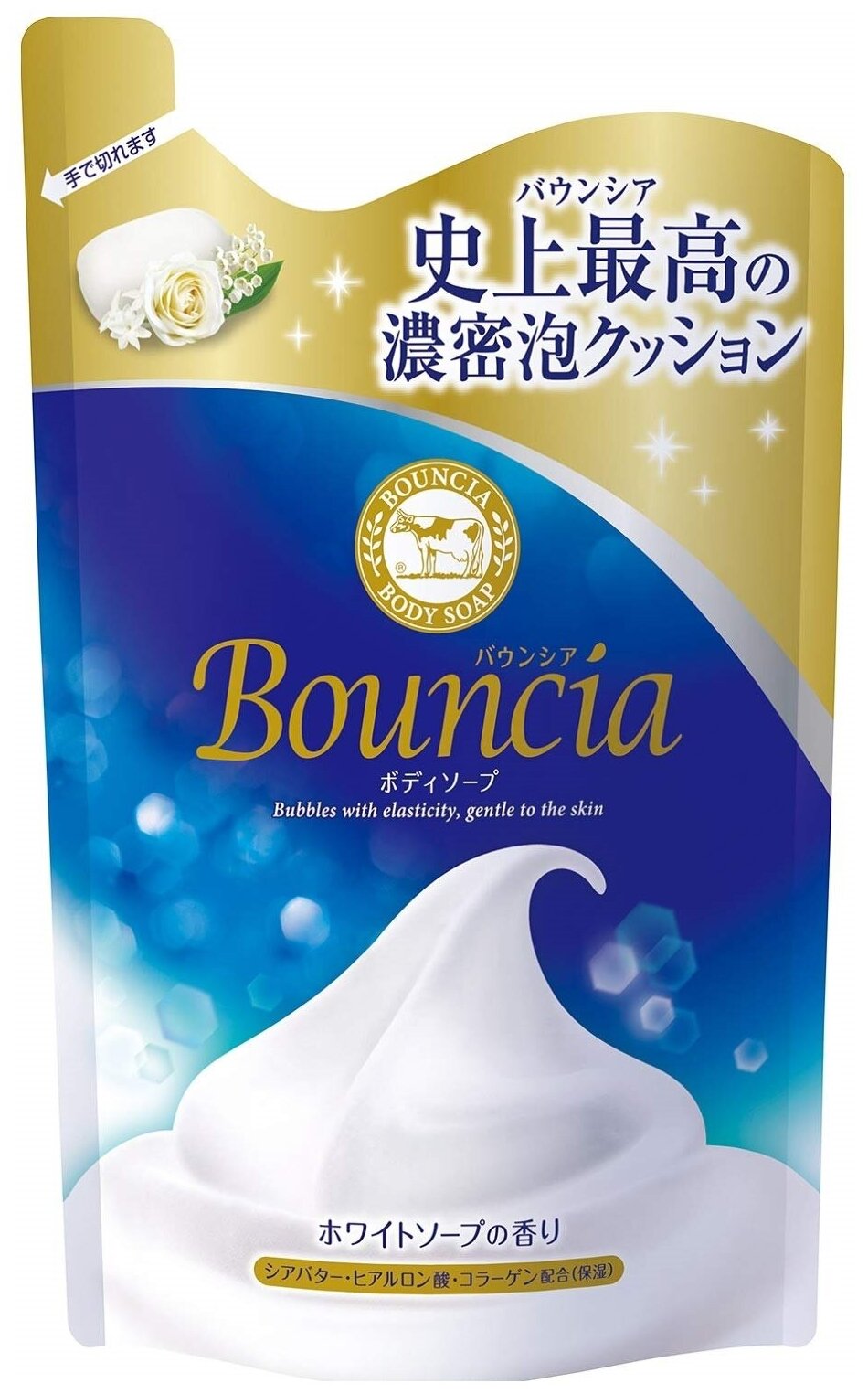 Жидкое мыло для тела и рук Cow Brand Bouncia Сливочное с гиалуроновой кислотой и коллагеном аромат свежести , в мягкой упаковке 400 мл