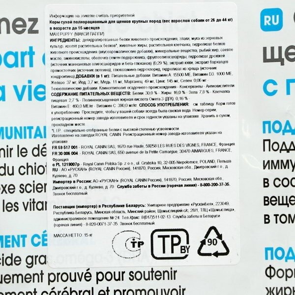 Ниже Вы можете прочитать отзывы на Royal Canin Puppy MAXI для щенков крупных пород в возрасте от 2 до 15 месяцев 15 кг, ознакомится с подробными характеристиками, посмотреть интересные обзоры и фотографии на Royal Canin Puppy MAXI для щенков крупных пород в возрасте от 2 до 15 месяцев 15 кг.