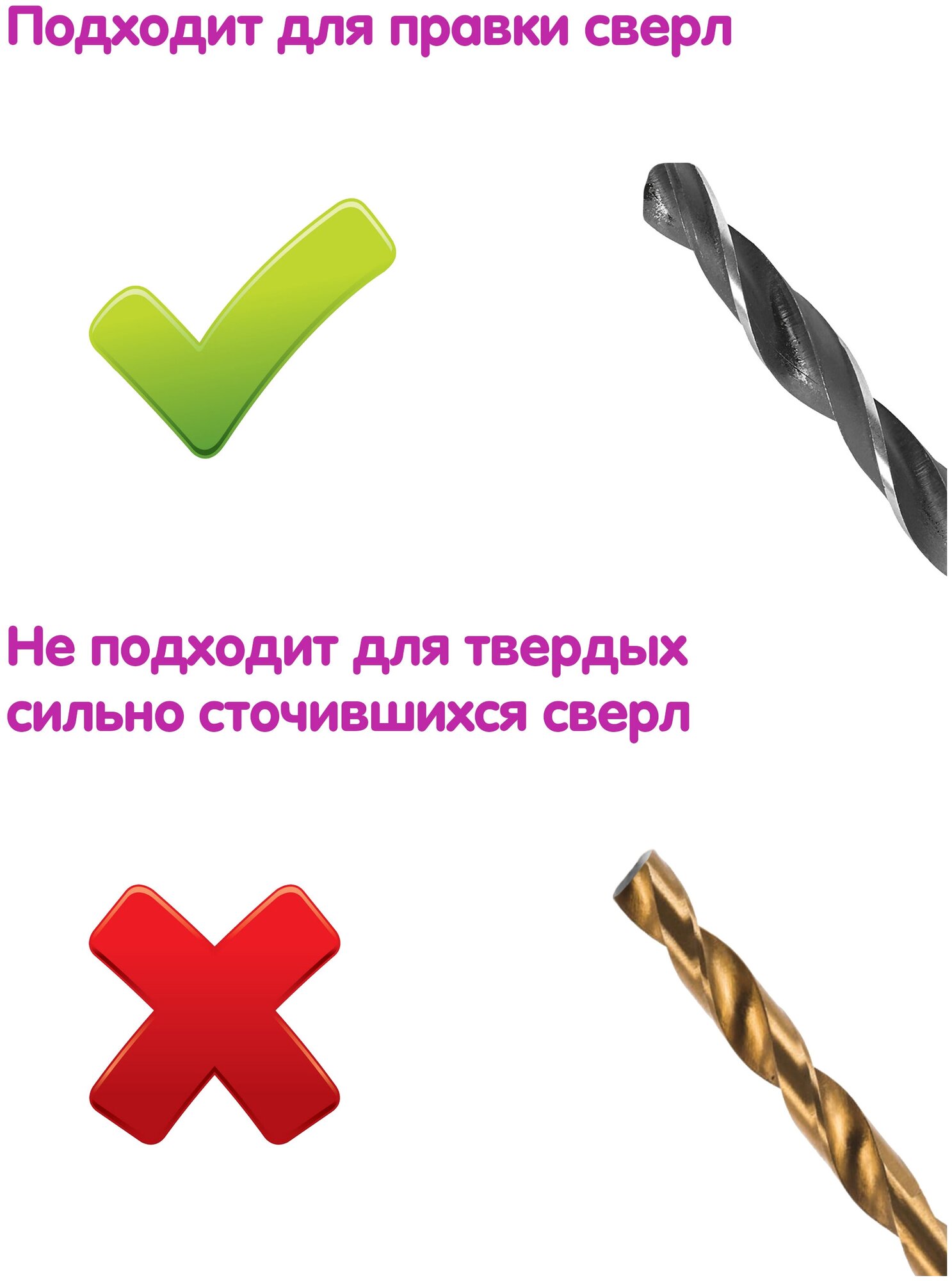 В домашних условиях править заточку свёрел очень даже годится, было бы конечно еще лучше, если бы изготовитель предусмотрел крепление затачиваемого сверла...