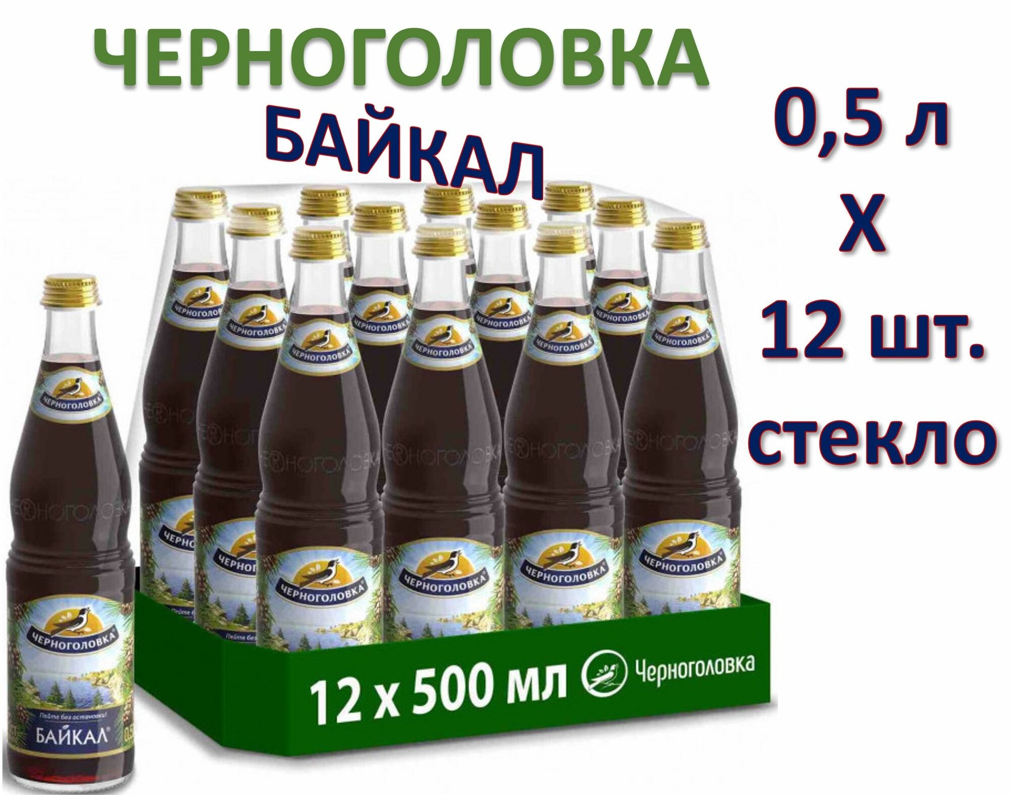 Газированный напиток Черноголовка Байкал, стеклянная бутылка, 0.5 л, стеклянная бутылка, 12 шт.