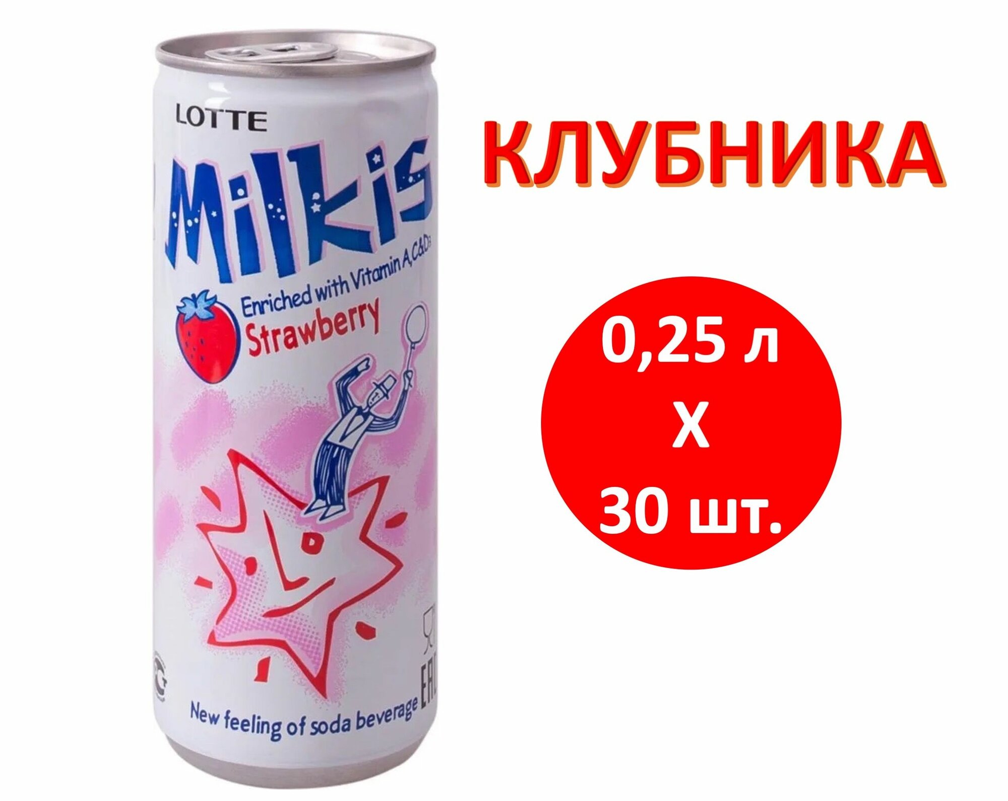 Напиток газированный безалкогольный Milkis (Милкис) со вкусом Клубники / 30 банок по 250 мл.
