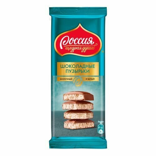 «Россия» - щедрая душа!®. Шоколадные пузырьки. Шоколад молочный и белый пористый 75г. интересное: