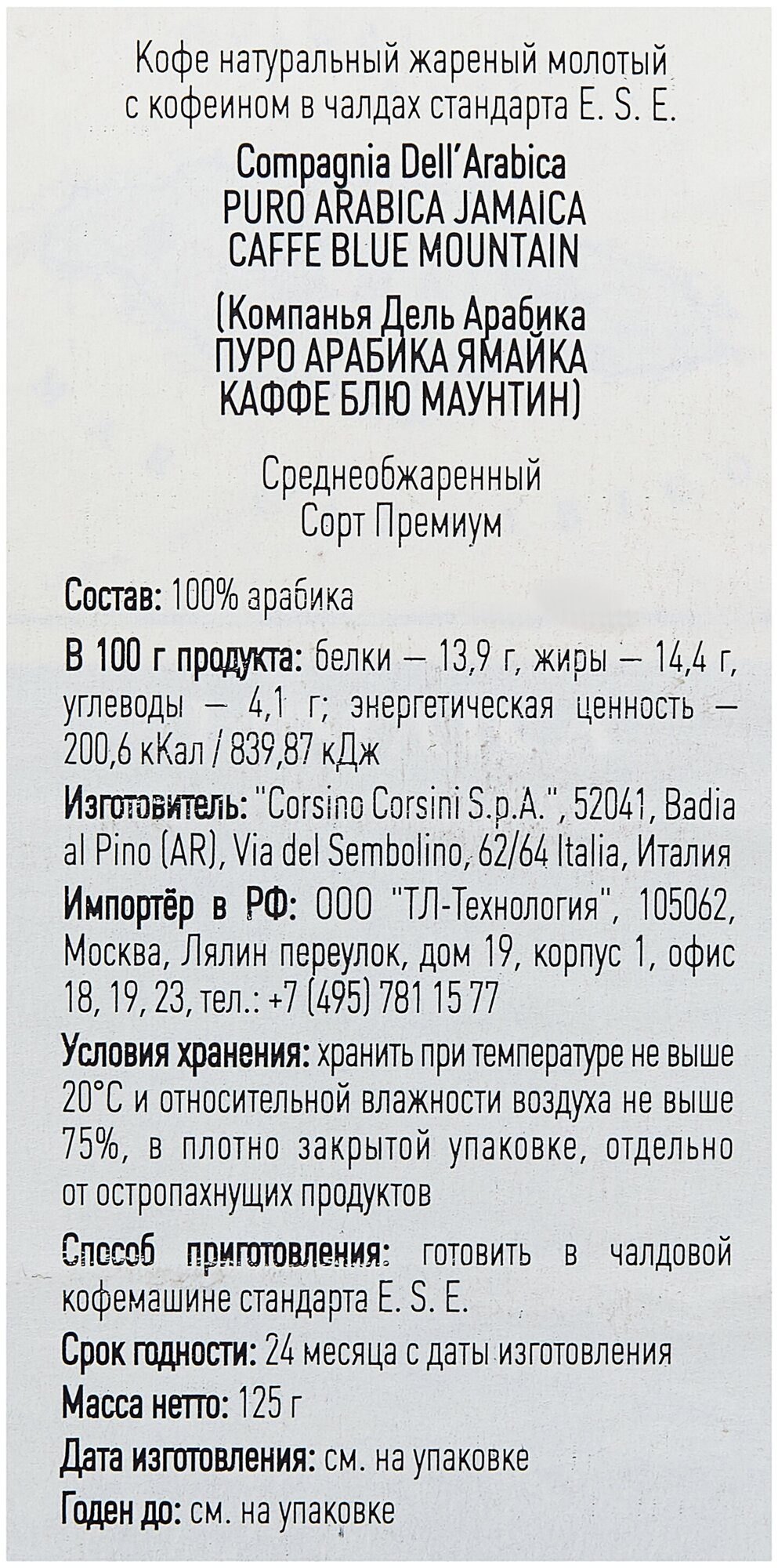 | Производитель | Compagnia Dell` Arabica |