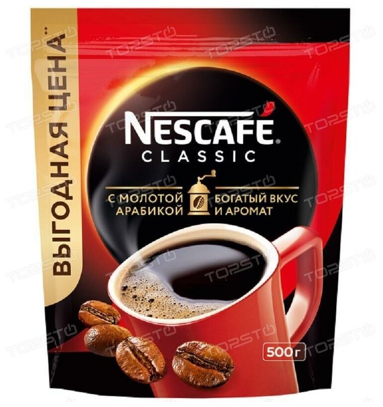 Нескафе Классик растворимый Кофе , NESCAFE Classic мягкая упаковка 500г