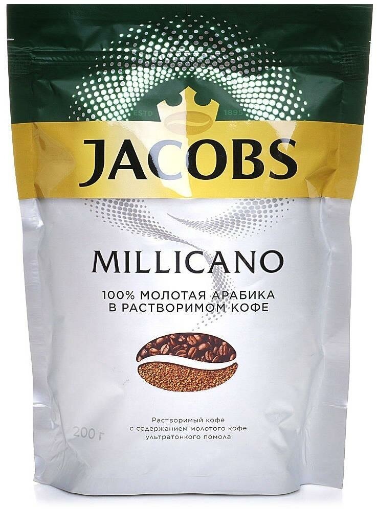 Кофе растворимый Jacobs Millicano с молотым кофе, 200 г пакет (Якобс)