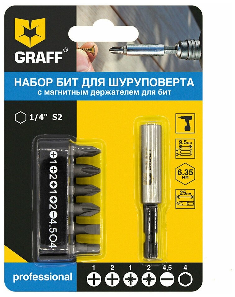 Набор из 6 бит и магнитный держатель мм GRAFF