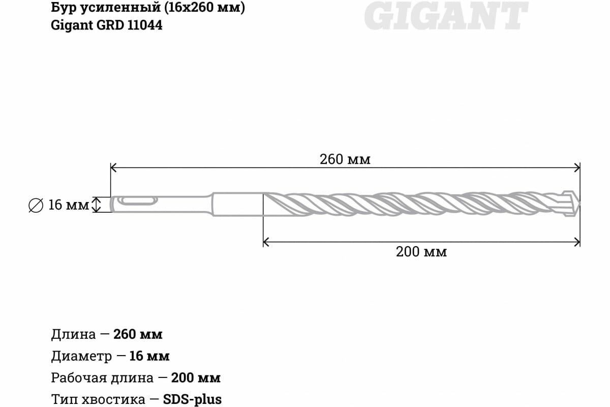 Бур усиленный (16x260 мм) Gigant GRD 11044