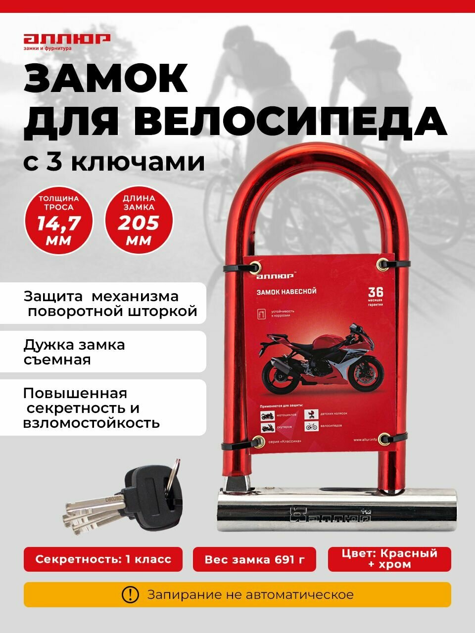 Замок велосипедный противоугонный U-lock аллюр ВС-130, диаметр дужки 15 мм интересное: