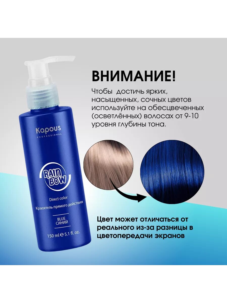 СохранитьKAPOUS Краситель прямого действия для волос, синий / Rainbow 150 мл интересное: