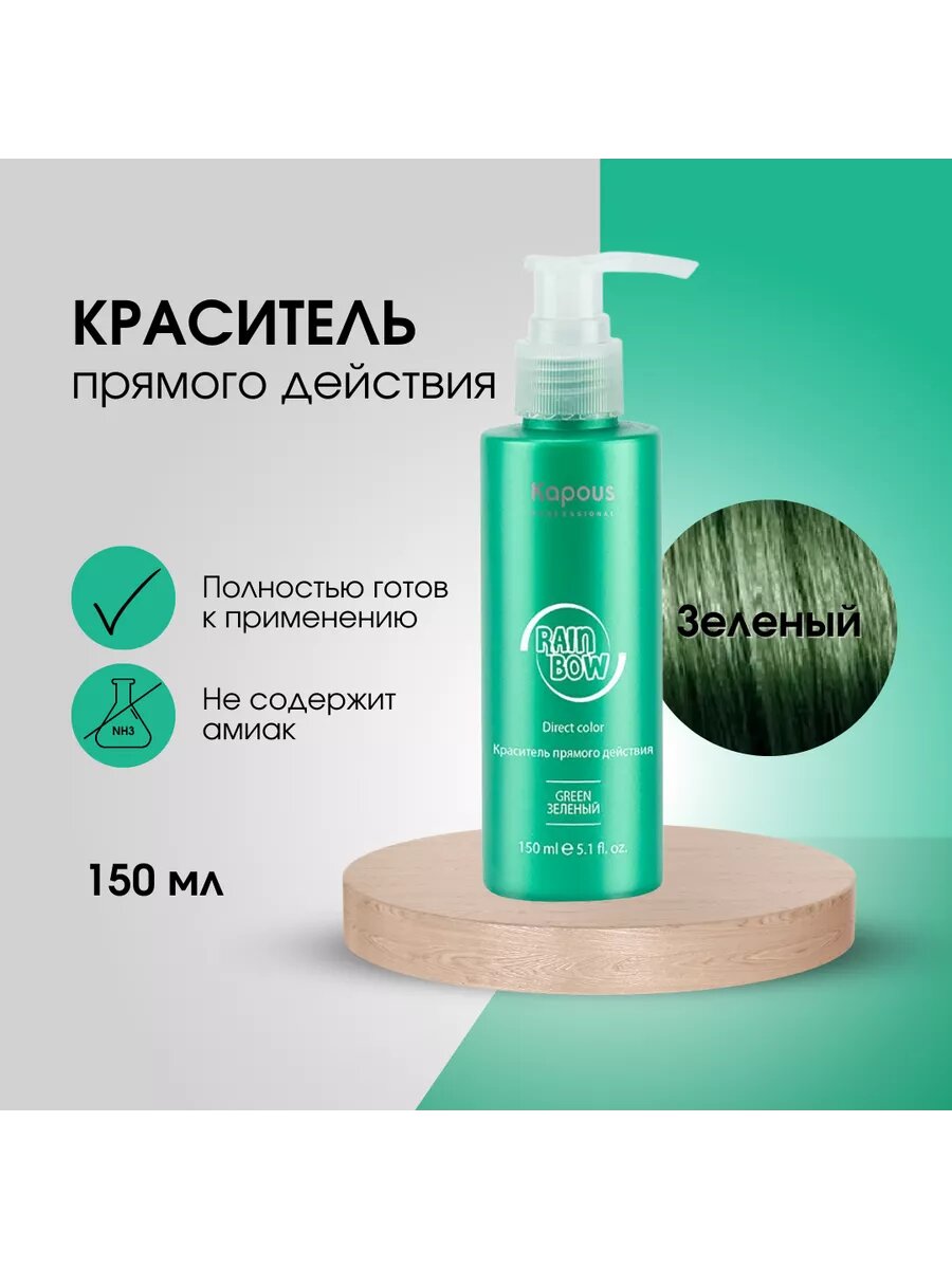Купить KAPOUS Краситель прямого действия для волос, зеленый / Rainbow 150 мл