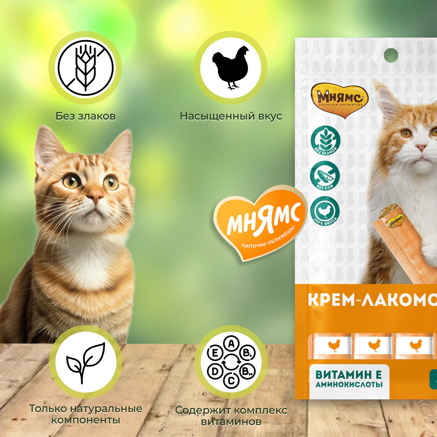 Мнямс Крем-лакомство для кошек с курицей, 15 г х 4 шт, 1 упак
