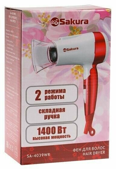 Фен SAKURA SA-4039WR 1400 Вт, красный/белый