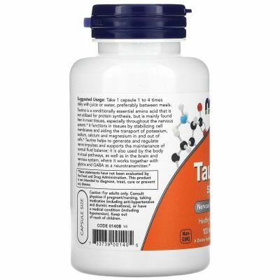 Аминокислота Таурин NOW Taurine 500 mg 100 капсул