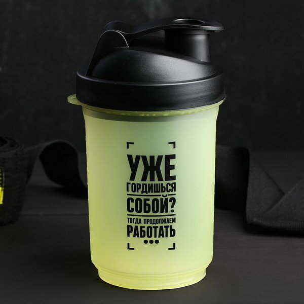 Шейкер спортивный "Уже гордишься собой?", чёрно-желтый, с чашей под протеин, 500 мл интересное: