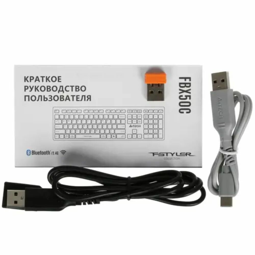 Клавиатура A4Tech Fstyler FBX50C USB беспроводная BT/Radio slim Multimedia, White