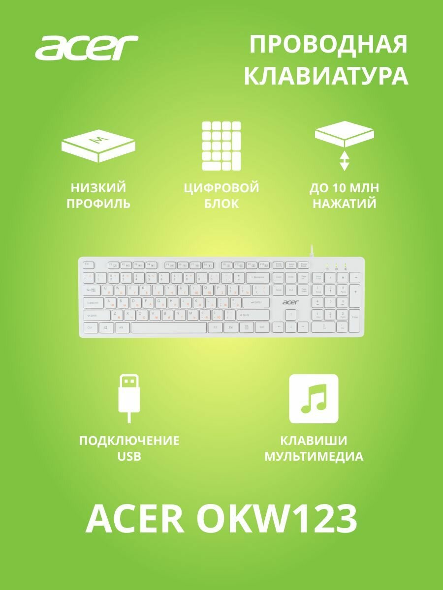 Клавиатура Acer OKW123, USB, белый [zl.kbdee.00d]