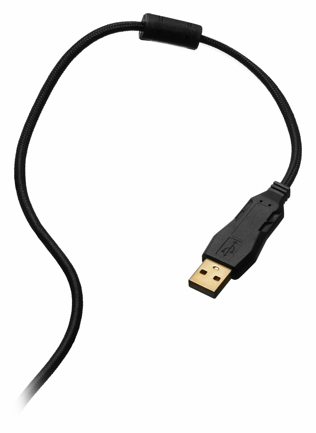 Шнур в оплетке, подсветку нельзя выключить, но свет не яркий, так что не напрягает... Хорошая штука если играешь часто в игры и не хочешь заюзать клавиатуру ноутбука. Как по мне не хватает клавиши энтер, но не критично. Ещё хорошо упакована. Рекомендую