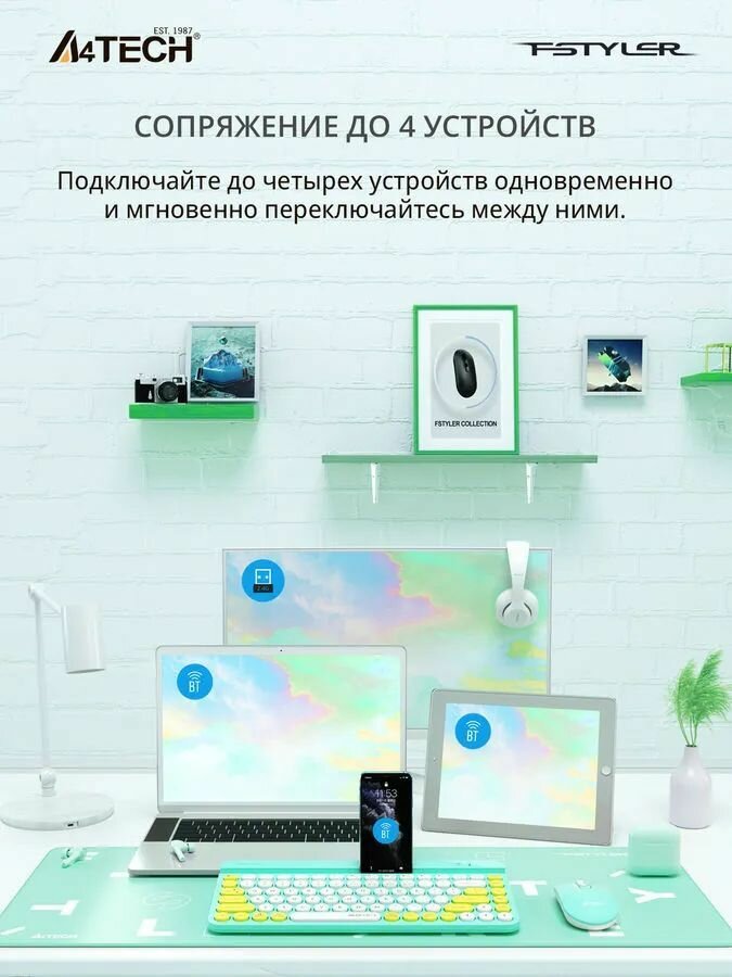 Купить Клавиатура A4Tech Fstyler FBK30 зеленый USB беспроводная BT/Radio slim Multimedia (FBK30 AVOCADO)