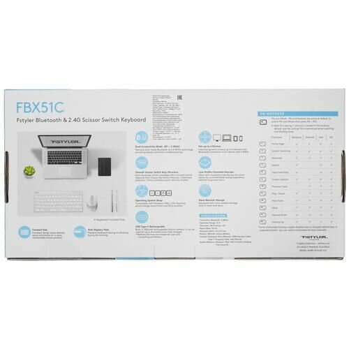 Клавиатура A4Tech Fstyler FBX51C, беспроводная Bluetooth 5.0 +2.4 ГГц, Multimedia, Li-on аккумулятор, Slim, TKL