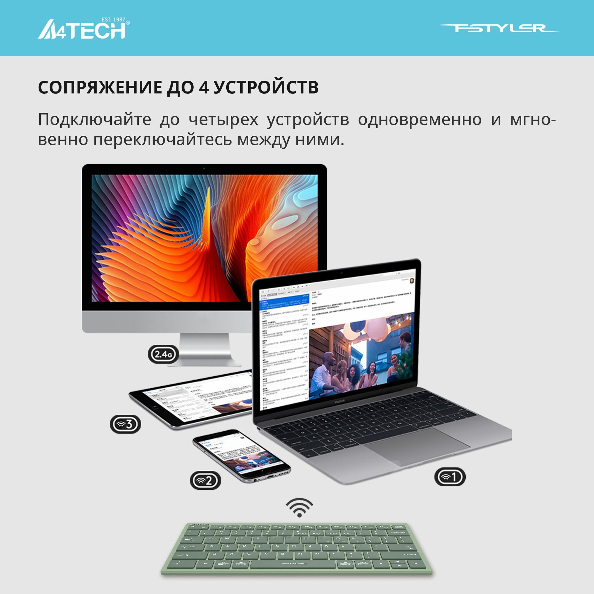 Клавиатура A4Tech Fstyler FBK30 зеленый USB беспроводная BT/Radio slim Multimedia