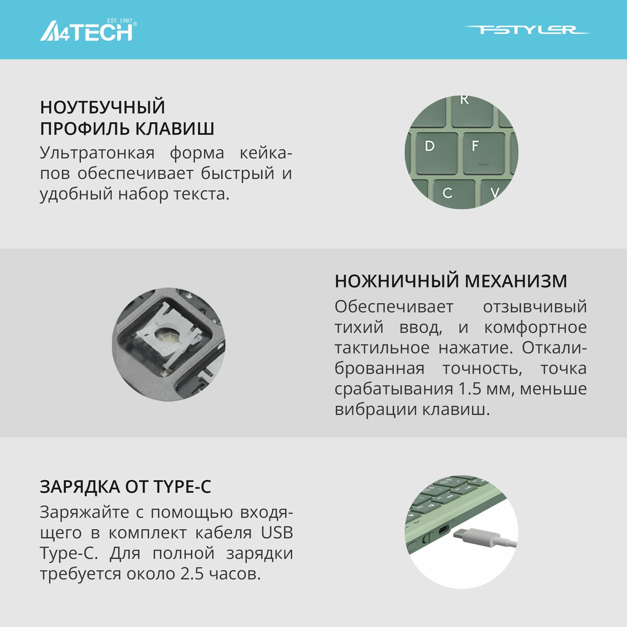 Купить Клавиатура A4Tech Fstyler FBX51C зеленый USB беспроводная BT/Radio slim Multimedia