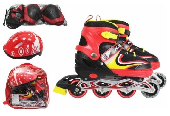 Роликовые коньки NAVIGATOR в комплекте с защитой и шлемом, светящиеся колесо, красный, S (30-33)
