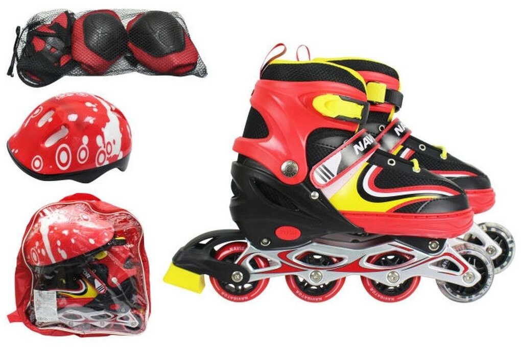 Роликовые коньки NAVIGATOR в комплекте с защитой и шлемом, светящиеся колесо, красный, M (34-37)