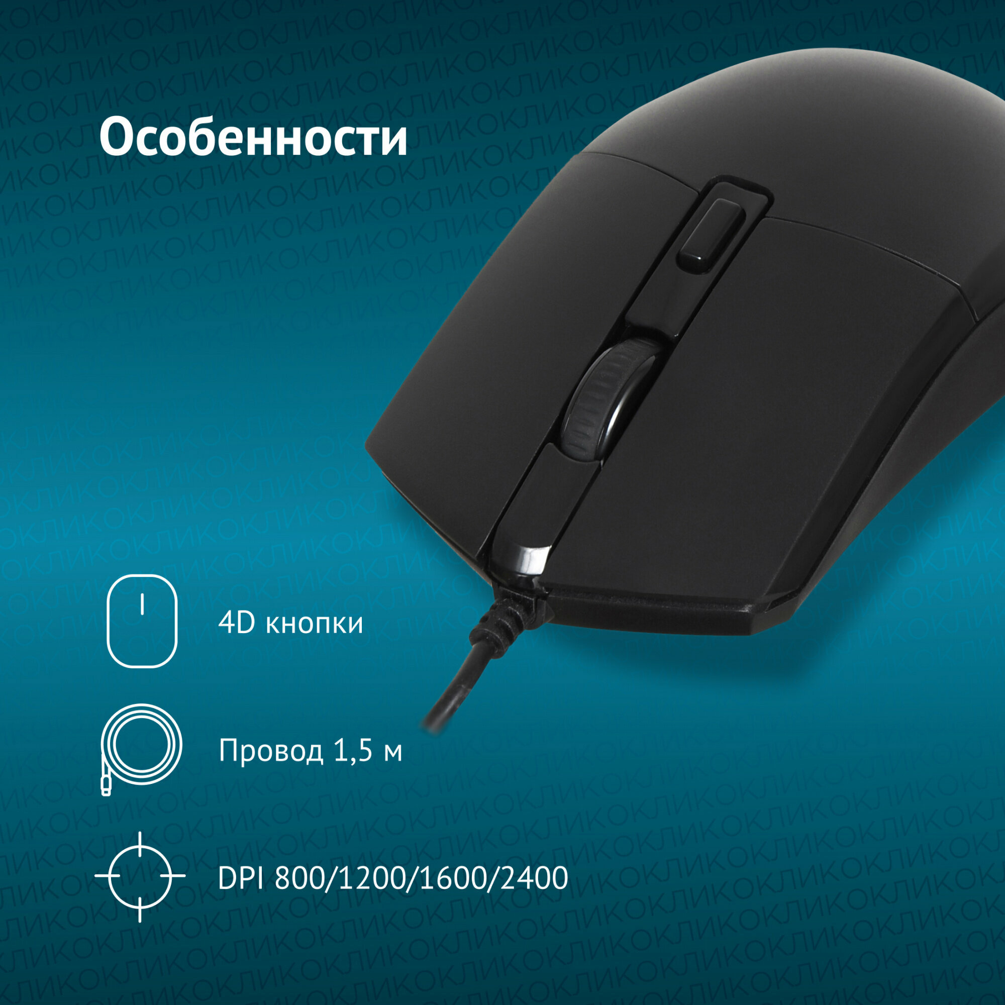 Мышь Oklick 225M, оптическая, проводная, USB, черный [997791]