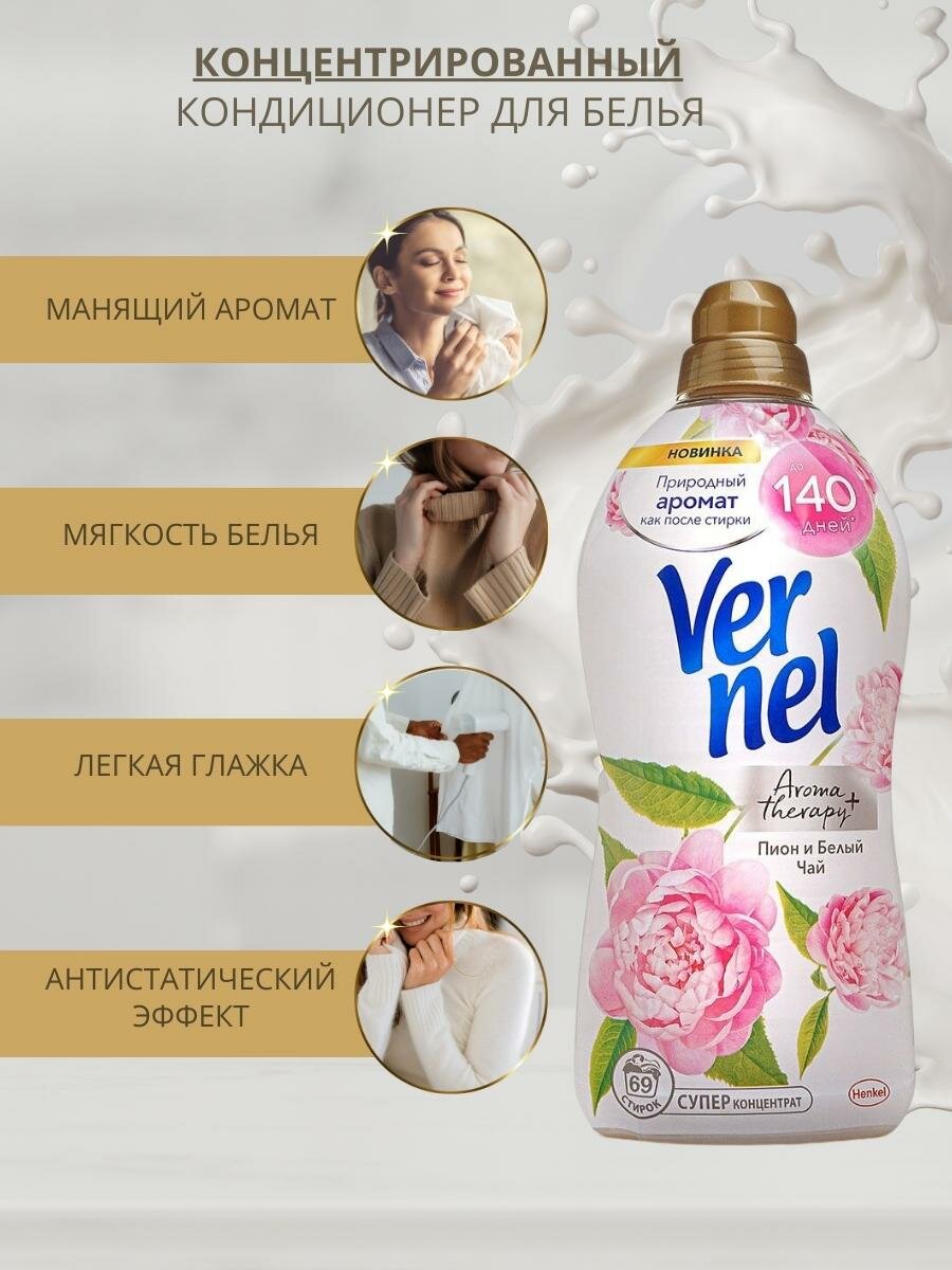 Кондиционер для белья вернель Ароматерапия+ Пион и белый чай, 1.74л