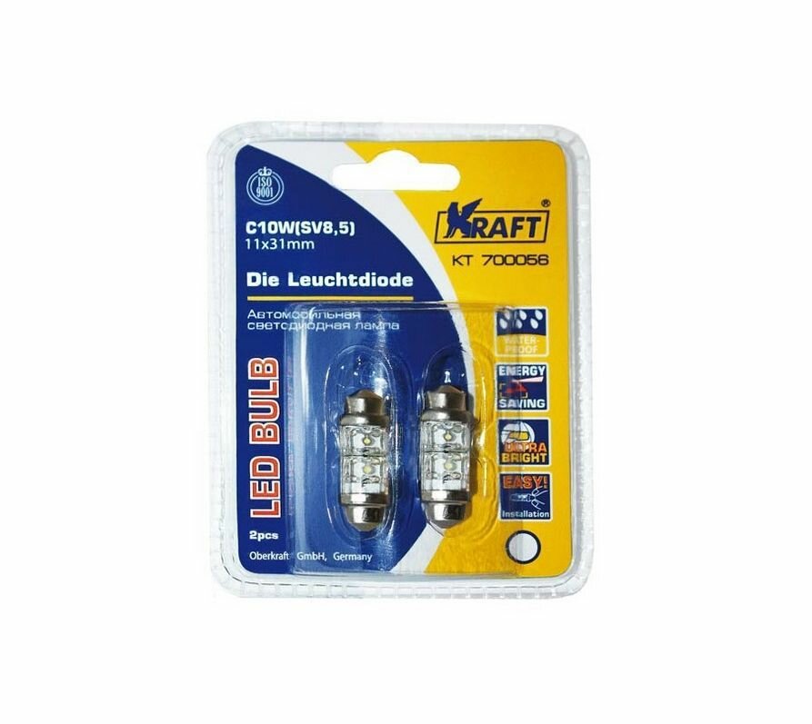 Лампа светодиодная 12V C10W 10W SV8,5-8 KRAFT 2 шт. блистер KT700056 Kraft арт. KT700056