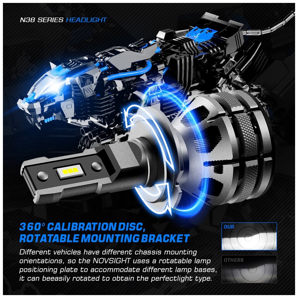 "Светодиодная автомобильная лампа Novsight модель N38, цоколь H16 - 80Вт (2 шт)" интересное: