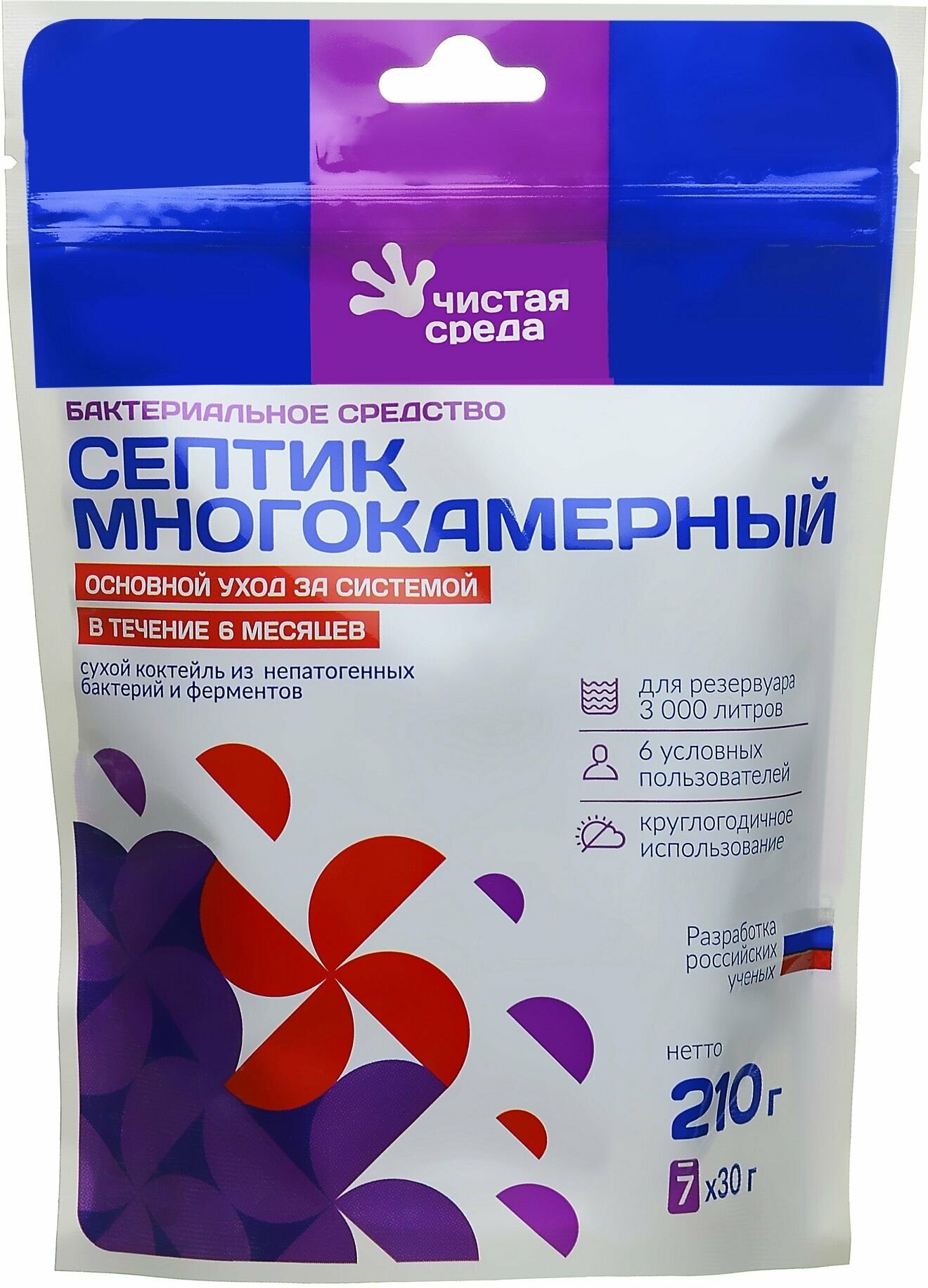 Чистая среда Биоактиваторы для септиков "Септик многокамерный", дой-пакет, 210 гр