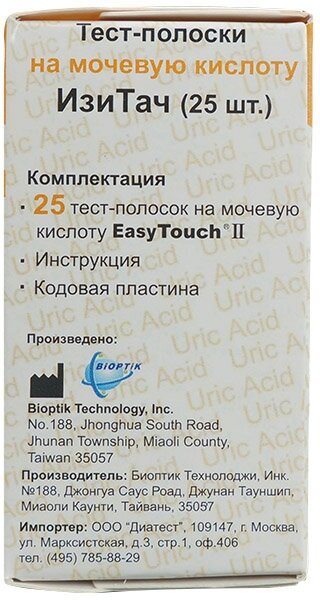 Тест-полоски на мочевую кислоту ИзиТач (EasyTouch Uric Acid) (25 шт), 2 уп.