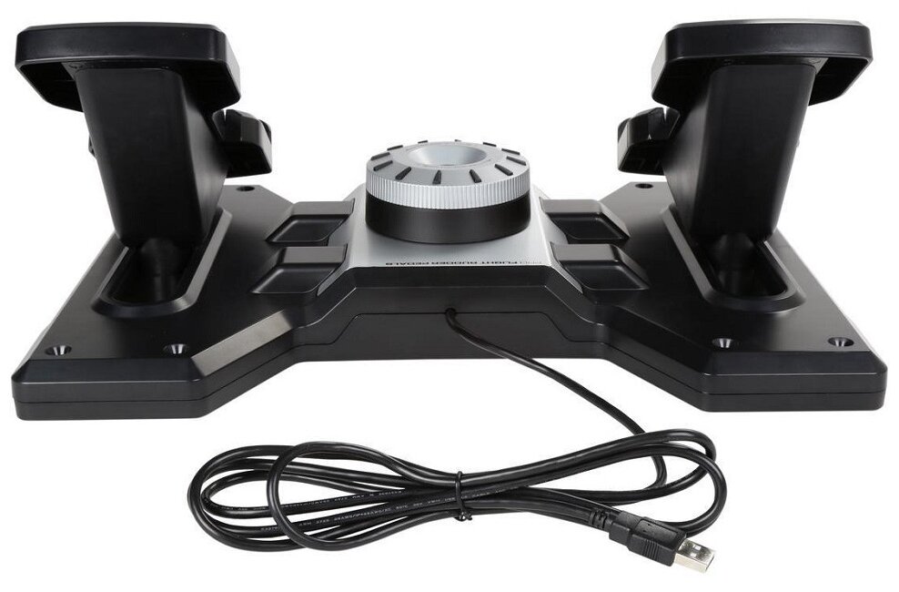 | Минусы: | Не совсем радует точность. Понятно, что от раддеров за 10к не стоит ждать чуда, но мертвая зона у педалей весьма плоха, что затрудняет тонкое управление летательным средством по оси рысканья. Следующий минус: у педалей плохие "ножки" вернее их совсем нет. Производитель явно предлагает два варианта: либо крепить педали на кронштейн или в кокпит, либо крепить двумя комплектными полосками двухстороннего скотча к полу. |