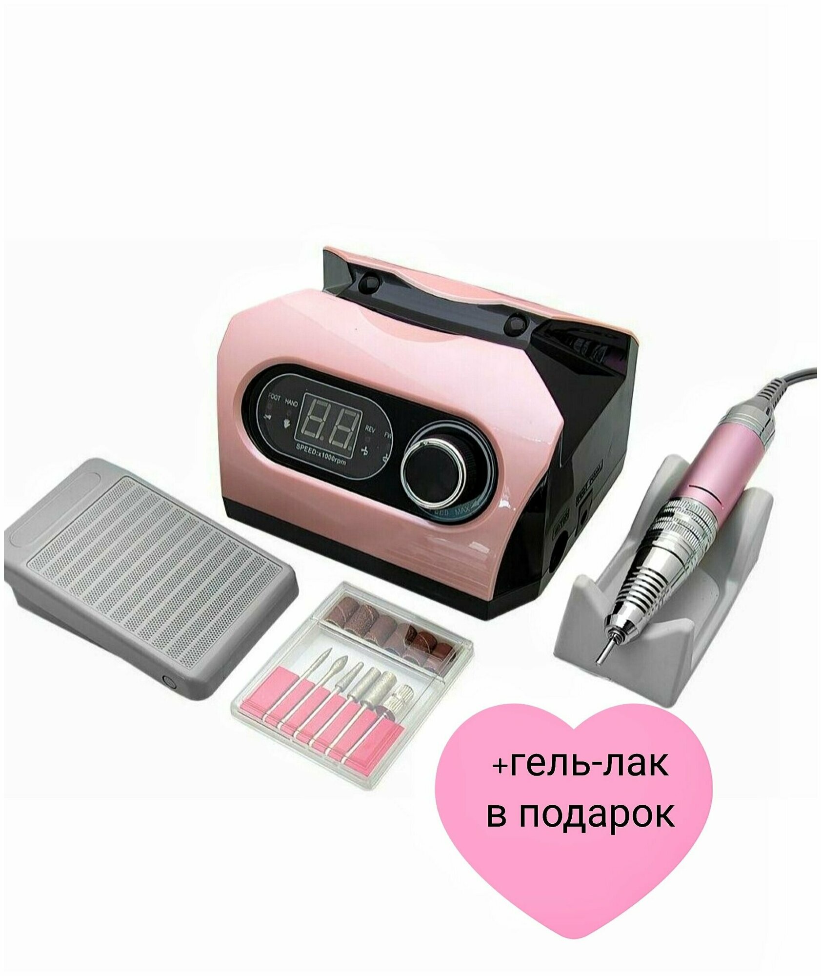 | Особенности | автоотключение при перегрузке / дисплей / для левшей / набор фрез в комплекте / отсутствие вибрации / педаль / пенал для фрез / плавная регулировка / подсветка / подставка для наконечника / цанговый зажим фрезы |