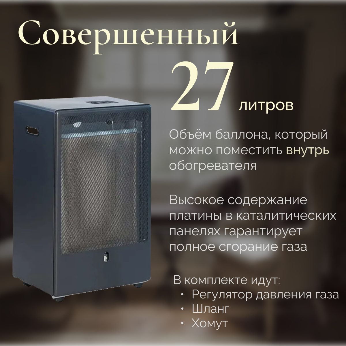 | Комплектация | Обогреватель - 1 шт. Регулятор давления газа - 1 шт. Шланг - 1 шт. Хомут - 2 шт. |