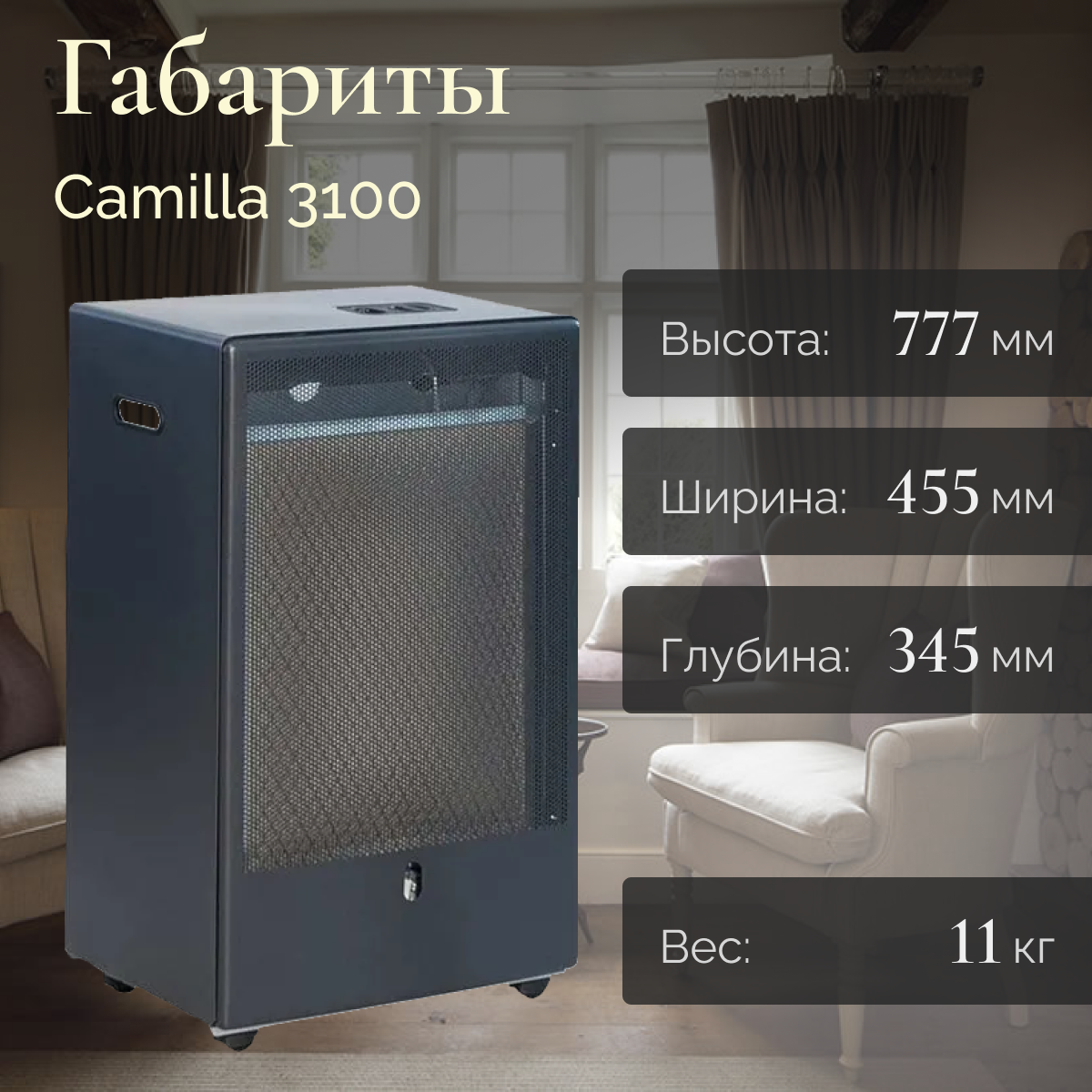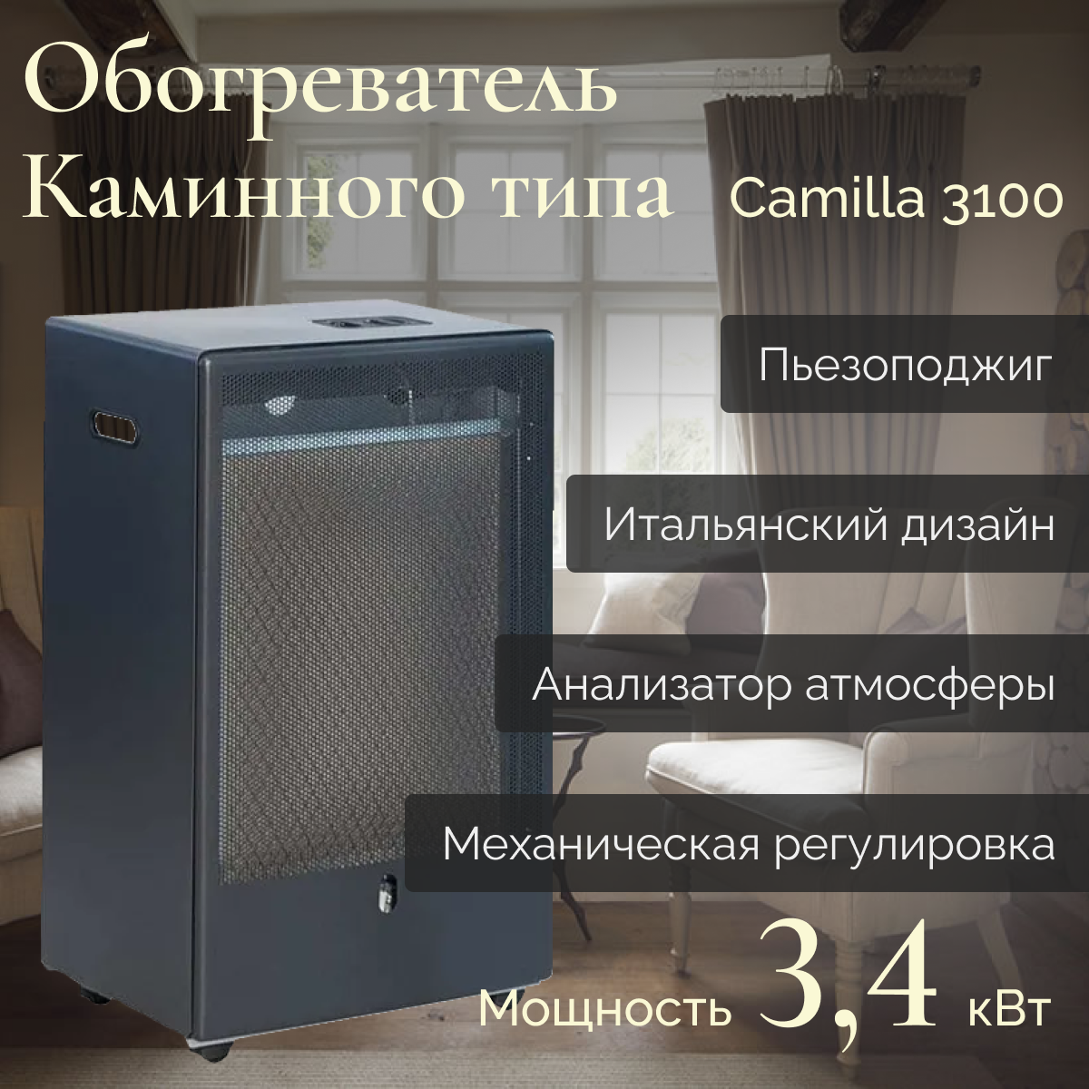 Каталитический газовый обогреватель ТМС 3,4 кВт, чёрный Camilla 3100 Black .