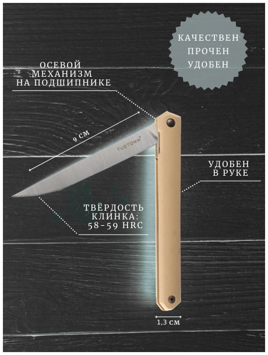 Купить Складной EDC нож Tuotown BDJ-TUO-S, на каждый день (флиппер на подшипнике), клин. из D2, рук. пластик Tan