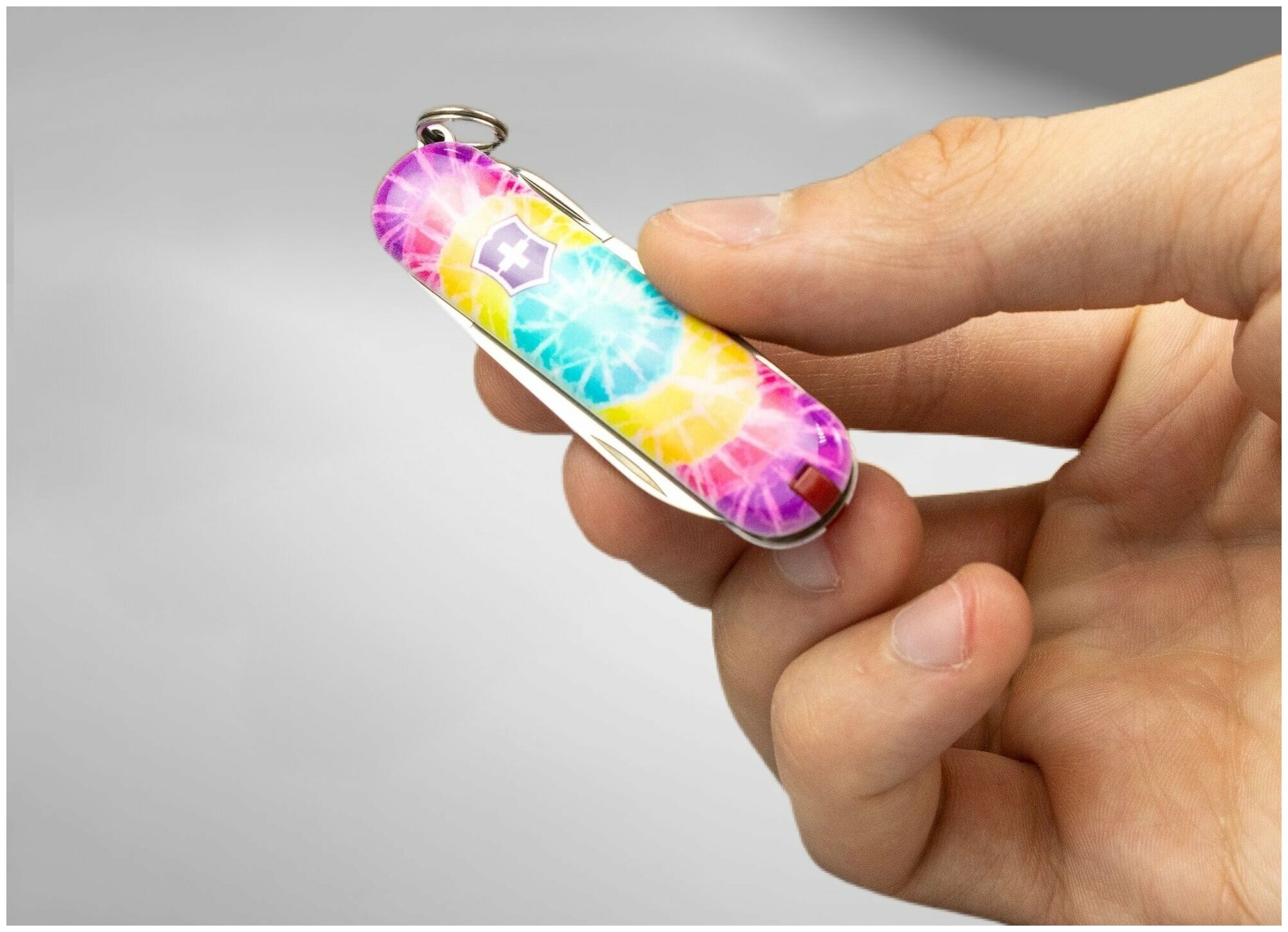 Нож-брелок VICTORINOX Classic 0.6223.L2103 "Tie Dye", 58 мм, 7 функций, лезвие и инструменты из нержавеющей стали, рукоять из пластика Cellidor