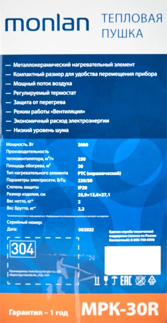 Тепловая пушка электрическая Monlan MPK-30R 3000 Вт интересное: