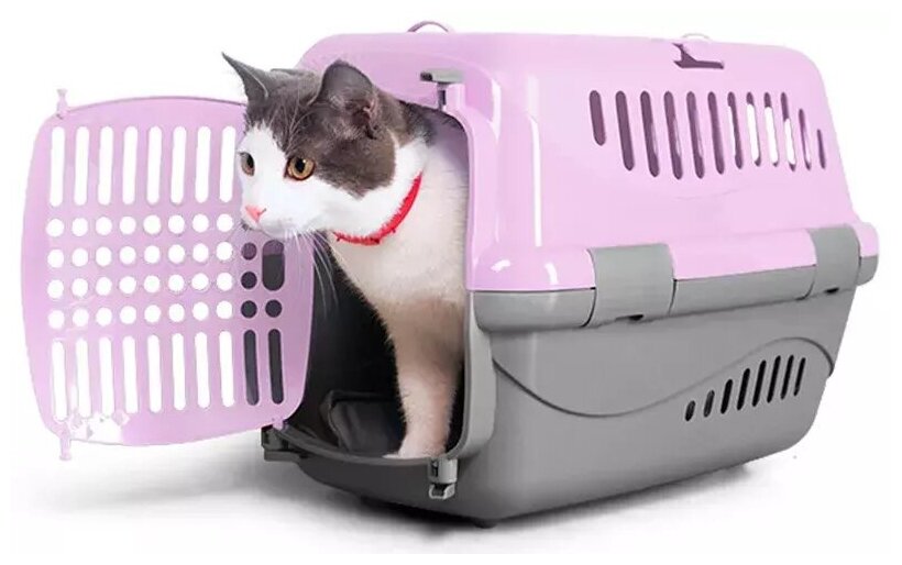 Купить Пластиковая переноска для животных ЗооЭкспресс "Турне" M с пластиковой дверцей, фиолетовая 48*32*32см