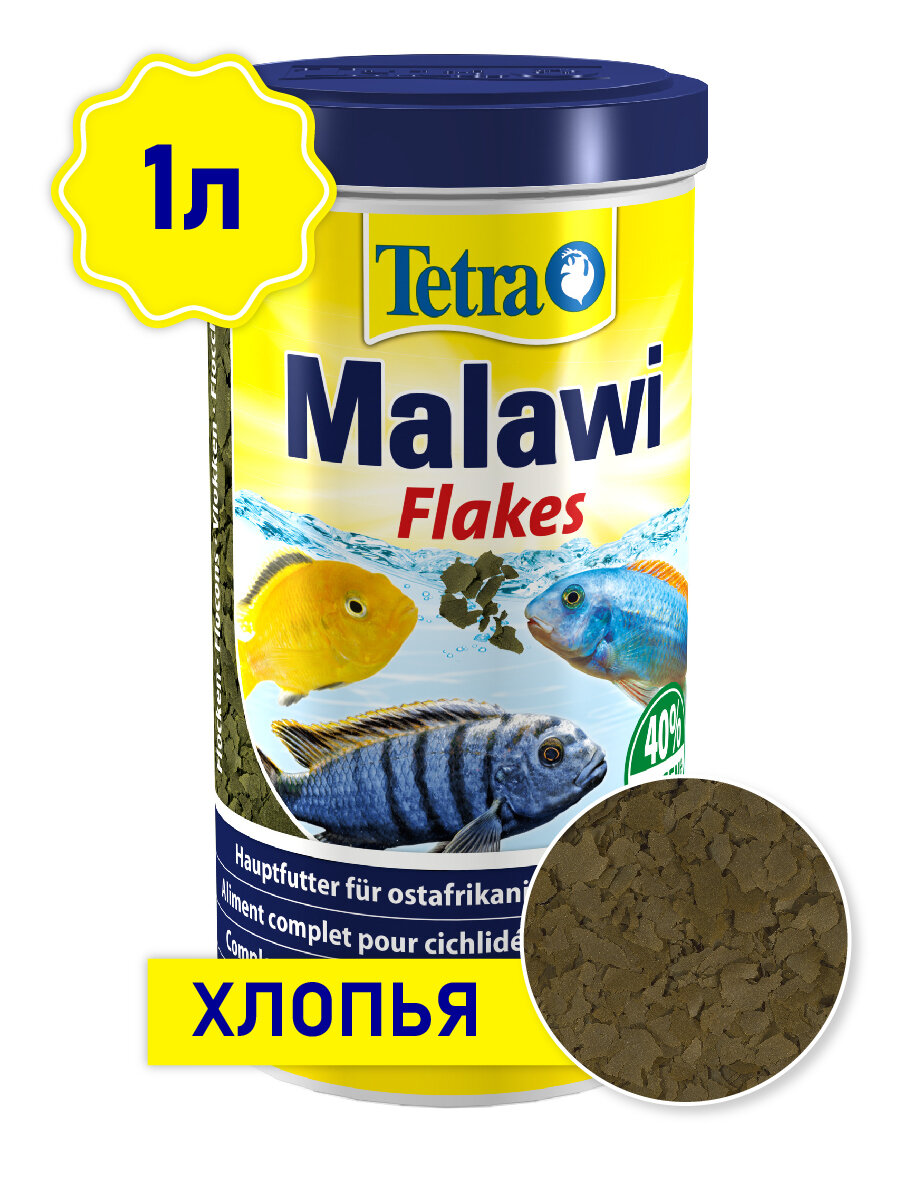 TetraMalawi Flakes (хлопья) 1л Основной корм для восточноафриканских цихлид и других крупных рыб (Германия) (1 шт)