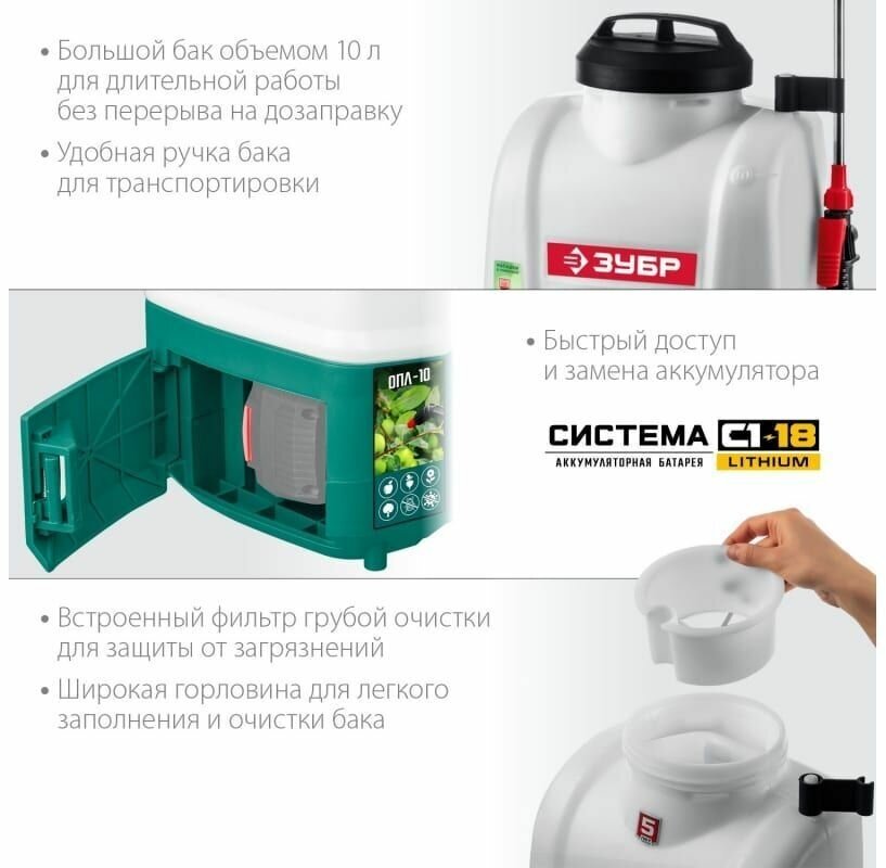 Аккумуляторный опрыскиватель ЗУБР 10 л ОПЛ-10 без АКБ интересное: