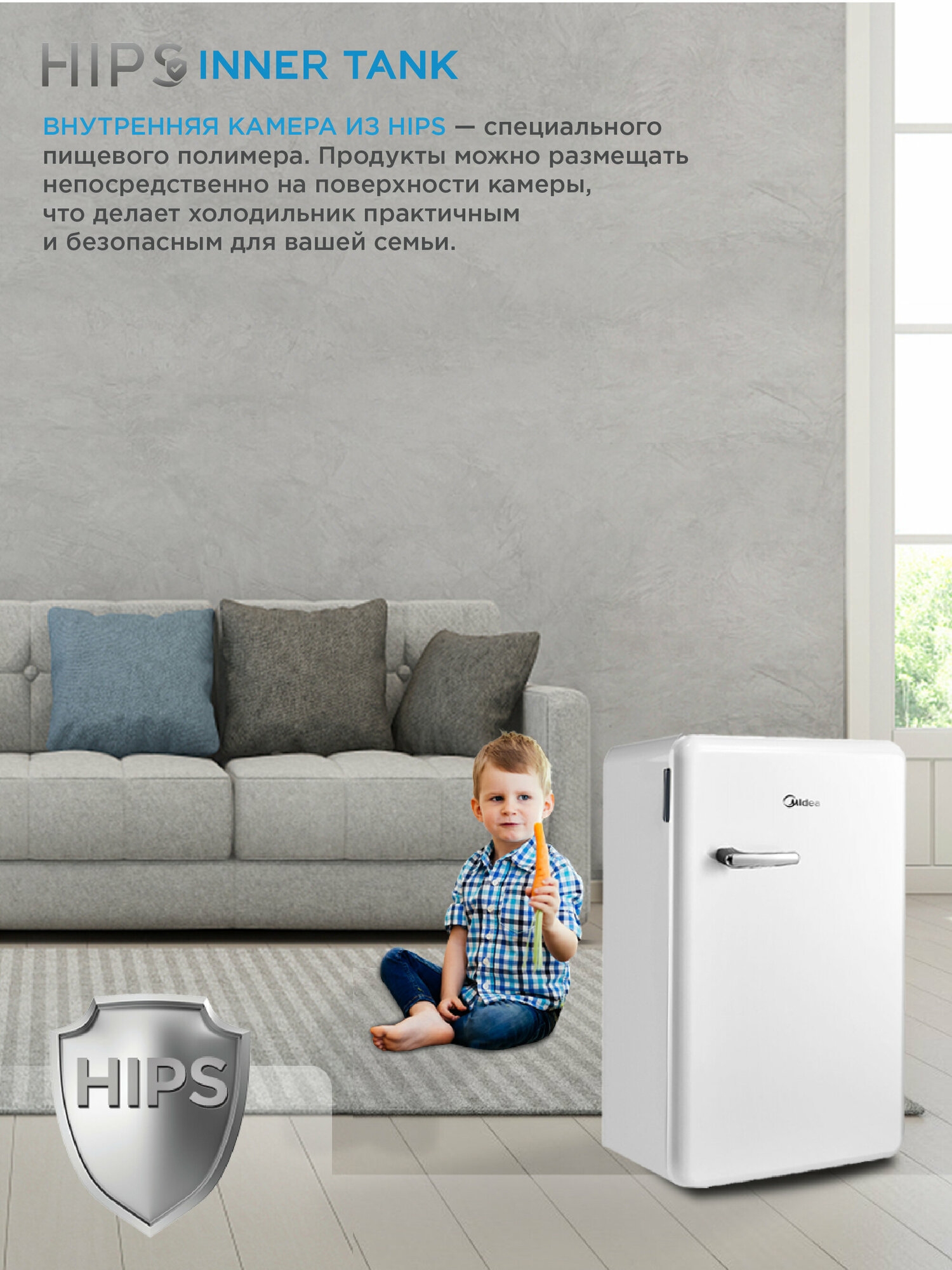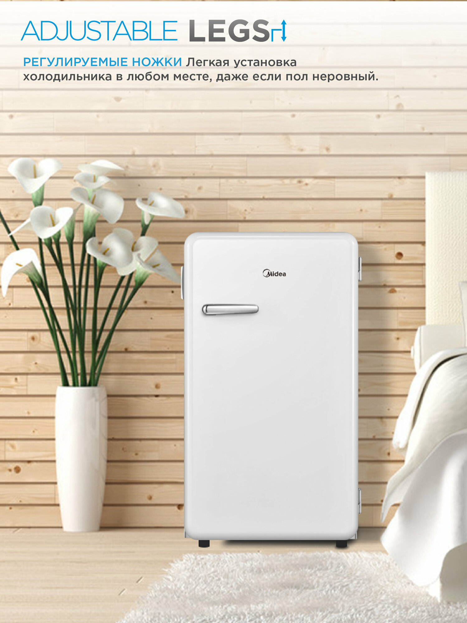 Холодильник Midea MDRD142SLF01, 93 л, энергосбережение, дверь легкого закрытия, ретро, белый